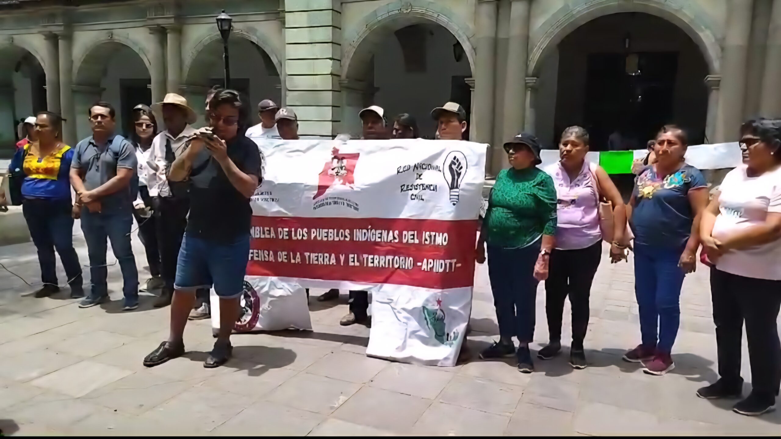 Integrantes de la Asamblea de los Pueblos Indígenas del Istmo de Tehuantepec protestaron frente al Palacio de Gobierno, para demandar una mesa de trabajo con representantes del gobierno del estado.