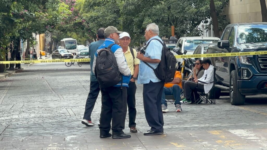 Los supervisores y jefes de sector de la Sección 22 de la CNTE están llevando a cabo un bloqueo en la calle Independencia esquina con Fiallo en el centro de la Ciudad de Oaxaca.