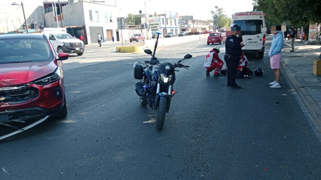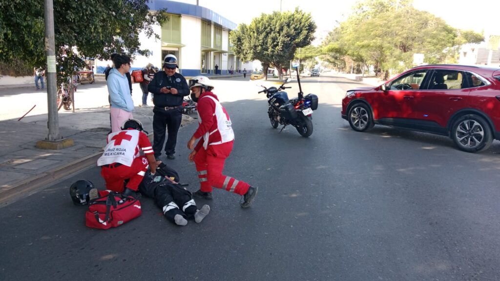 Un motociclista resultó lesionado tras sufrir un accidente sobre la avenida Eduardo Mata, frente a Rodi Raban, en la capital oaxaqueña, en medio del desorden vial provocado por los bloqueos registrados en la zona.