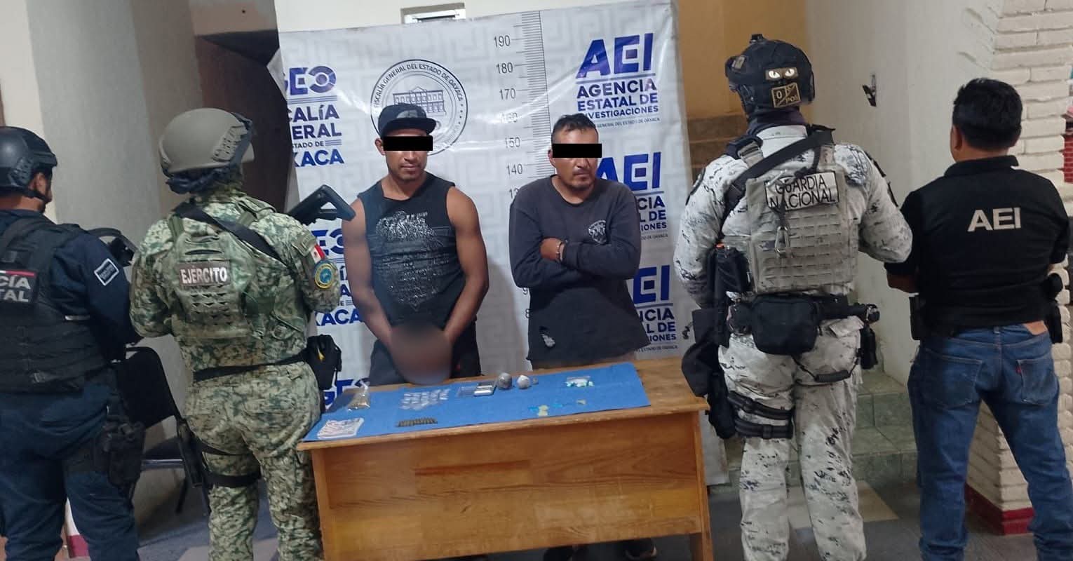 Oaxaca de Juárez, Oax., a 6 de abril de 2026.- La Fiscalía General del Estado de Oaxaca (FGEO) ejecutó una orden de cateo en el municipio de Soledad Etla, acción que permitió la detención de dos hombres identificados como D.J.H. y V.I.D.H., así como el aseguramiento de diversas dosis de drogas.