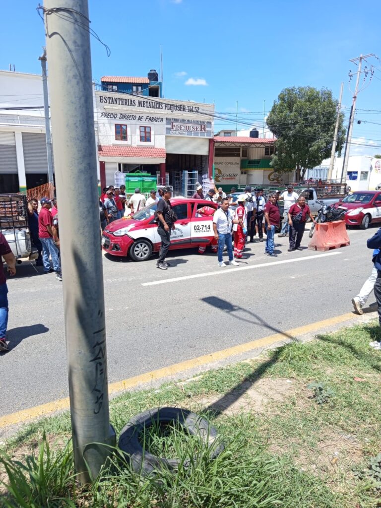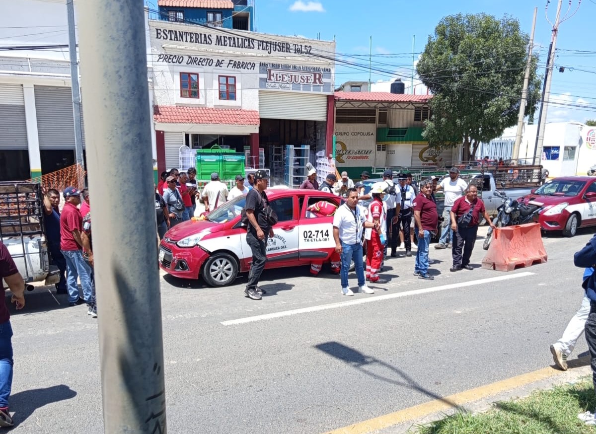 En el lugar, un taxi de Telixtlahuaca con número económico 02-714 fue impactado por otro vehículo, lo que generó daños materiales y al menos dos personas lesionadas.