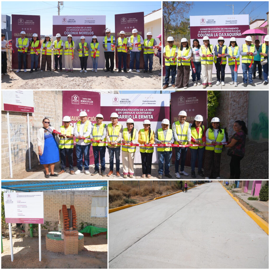 Santa Cruz Xoxocotlán, Oax., 13 de feb.– El Ayuntamiento de Santa Cruz Xoxocotlán realizó una jornada de entrega de obras que beneficia directamente a 832 habitantes para mejor la distribución de agua potable, la salud y la movilidad.