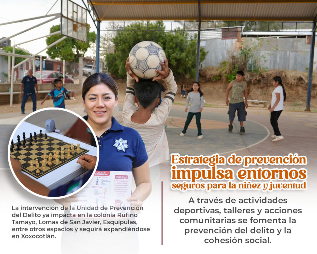 La Policía Municipal de Santa Cruz Xoxocotlán puso en marcha la estrategia “Reactivación con Prevención”, una iniciativa enfocada en niñas, niños y jóvenes que busca reducir factores de riesgo mediante actividades deportivas, talleres y acciones comunitarias.