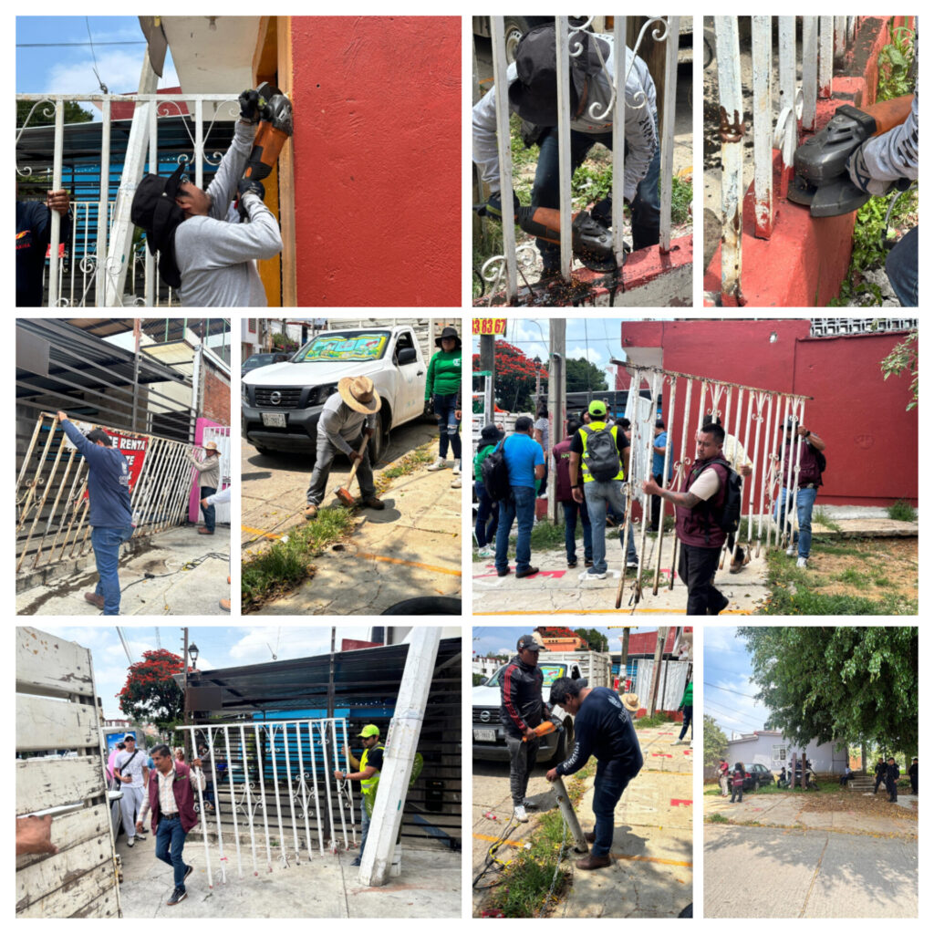 Oaxaca de Juárez, Oax. 04 de septiembre 2025. Como parte de las acciones para mejorar la accesibilidad a los espacios públicos, la Secretaría de Gobierno y Territorio Municipal que encabeza Noé Jara Cruz, a través de la Dirección de Gobierno y Gestión y en coordinación directa con la Secretaría de Obras Públicas y Desarrollo Urbano, la Secretaría de Servicios Vecinales, así como la Dirección de Proximidad Social y la Consejería Jurídica, llevó a cabo el retiro de rejas y postes metálicos en la calle Esteban Baca Calderón, ubicada en la cuarta etapa del fraccionamiento Infonavit 1º de Mayo.