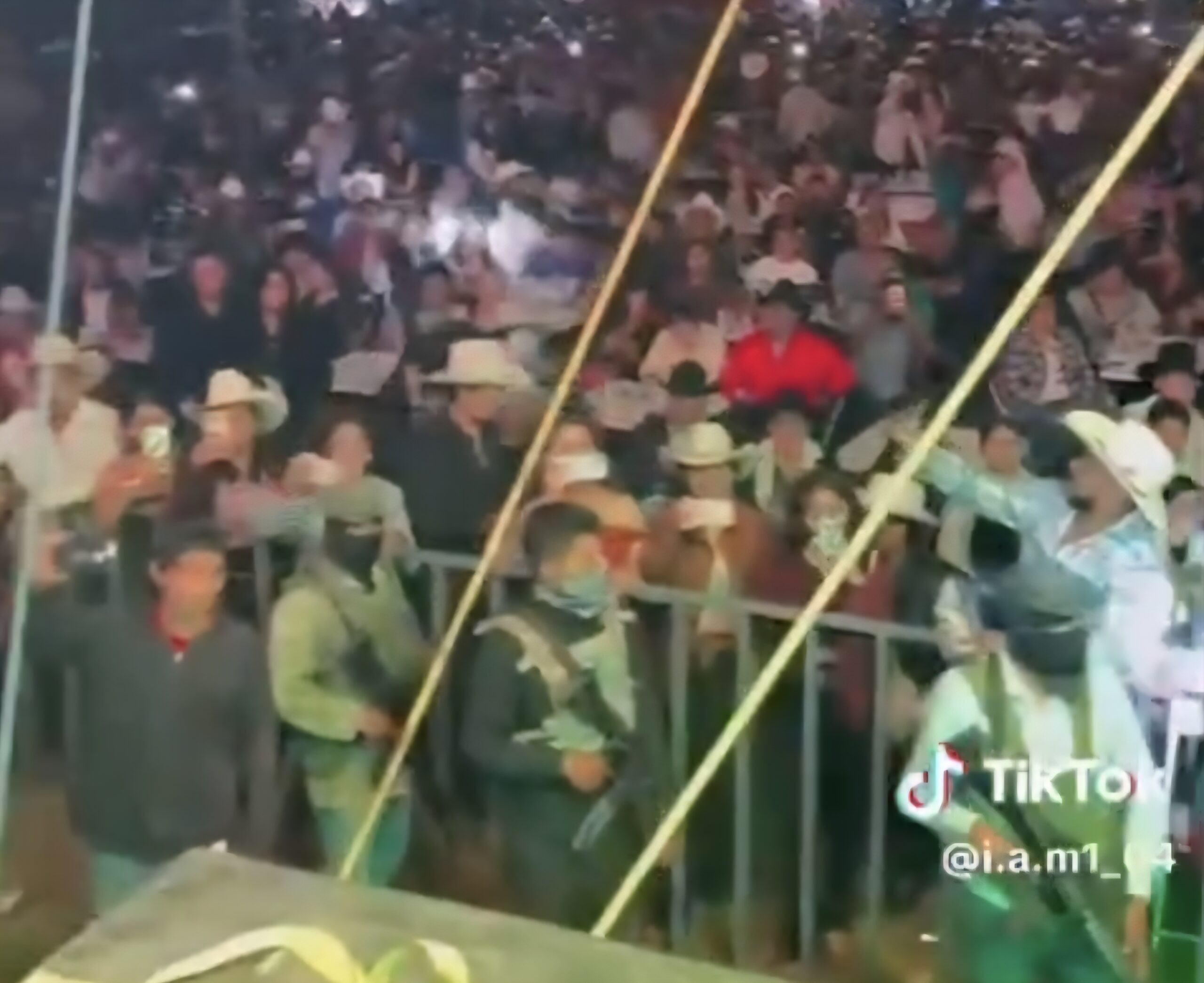 La presencia de al menos una decena de sujetos fuertemente armados que vigilaban el acceso y los alrededores del evento generó inquietud entre la población, pues no portaban uniformes que los identificaran como parte de alguna corporación oficial.