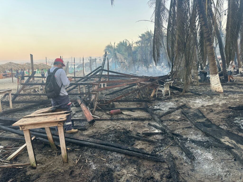 De acuerdo con el edil, el siniestro inició aproximadamente a la 1:45 de la madrugada, presuntamente a causa de un cortocircuito en uno de los locales, lo que provocó que el fuego se propagara rápidamente entre las palapas de la zona.