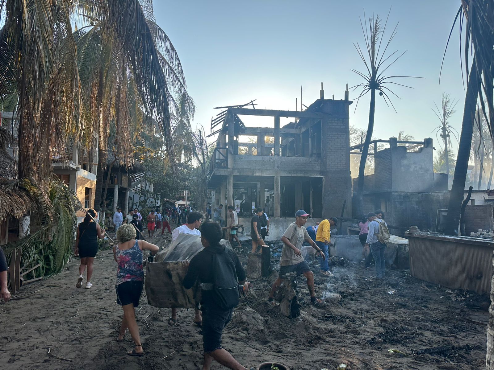 Explicó que Protección Civil Municipal y posteriormente Protección Civil del Estado acudieron para atender la emergencia; sin embargo, las características de los establecimientos —principalmente construcciones de madera y palapa— dificultaron las labores para controlar el fuego.