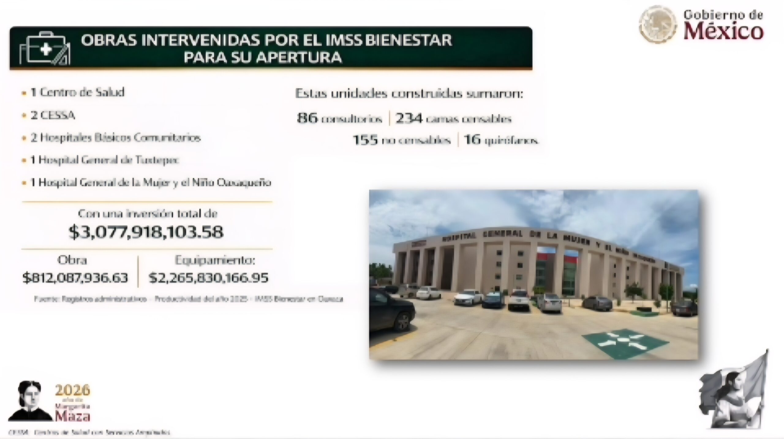🆗 Adicionalmente se invierten casi 70 MDP en tres Hospitales Comunitarios y un Centro de Salud.