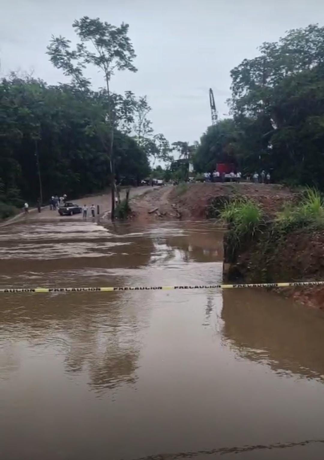 Las lluvias provocaron la inundación del puente del vado de Arroyo Choapam, Chiltepec, por lo que no hay paso en la zona.