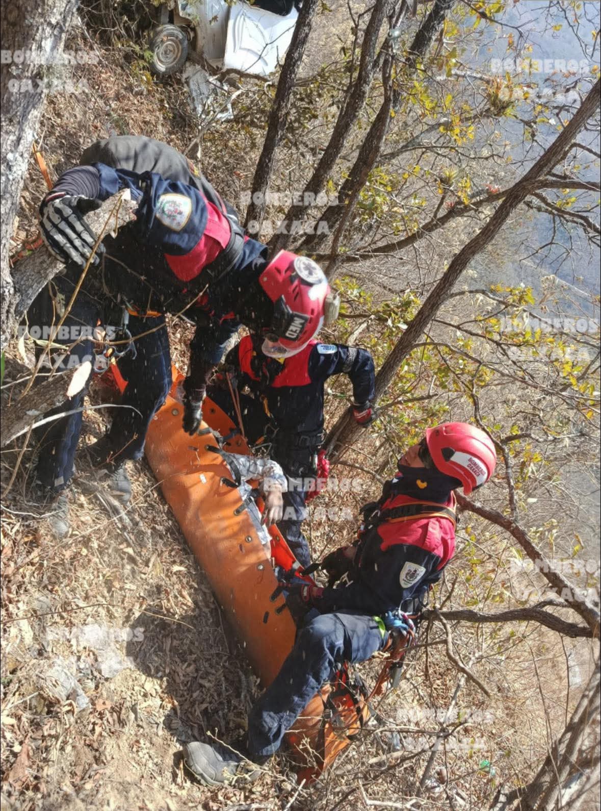 En el lugar, los bomberos realizaron maniobras de descenso y rescate en la barranca, donde localizaron a un hombre que ya no contaba con signos vitales.