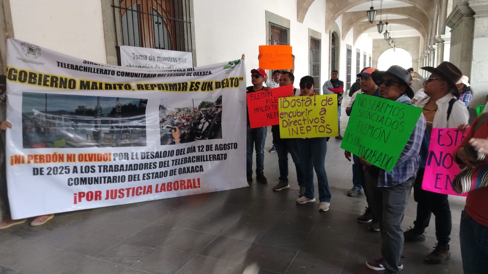 Con lonas y consignas, los trabajadores advirtieron que no se retirarán hasta que sus demandas sean atendidas, pues consideran que la situación del Telebachillerato Comunitario requiere cambios urgentes para garantizar el buen funcionamiento del sistema educativo en las comunidades, señalaron.