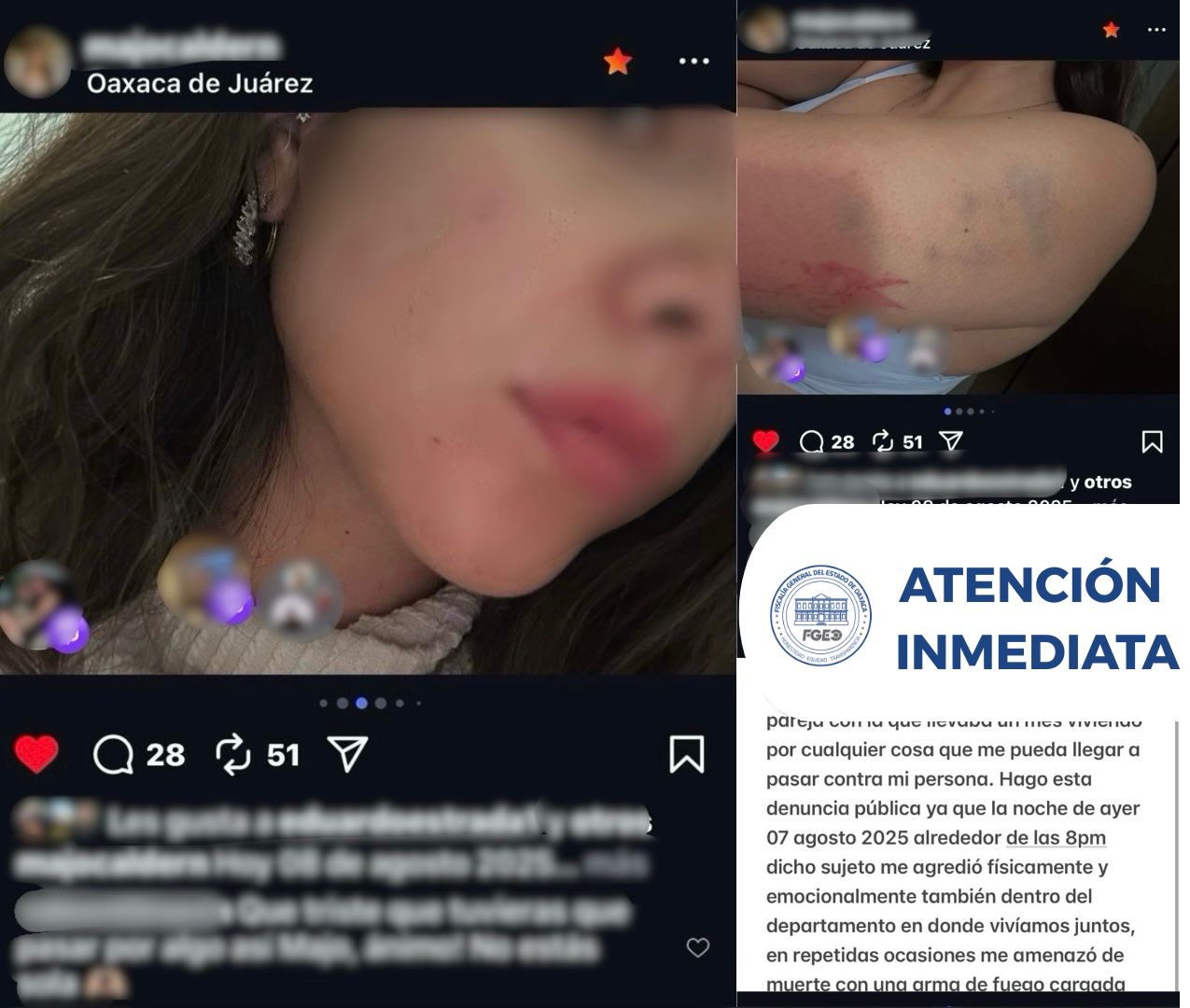 Oaxaca de Juárez, Oax. 8 de agosto de 2025.– La Fiscalía General del Estado de Oaxaca (FGEO) abrió una carpeta de investigación luego de que una mujer identificada como M.J.C.G. hiciera pública, a través de un video en redes sociales, la violencia que sufrió dentro de su domicilio en la colonia Lomas del Crestón, en la capital oaxaqueña.