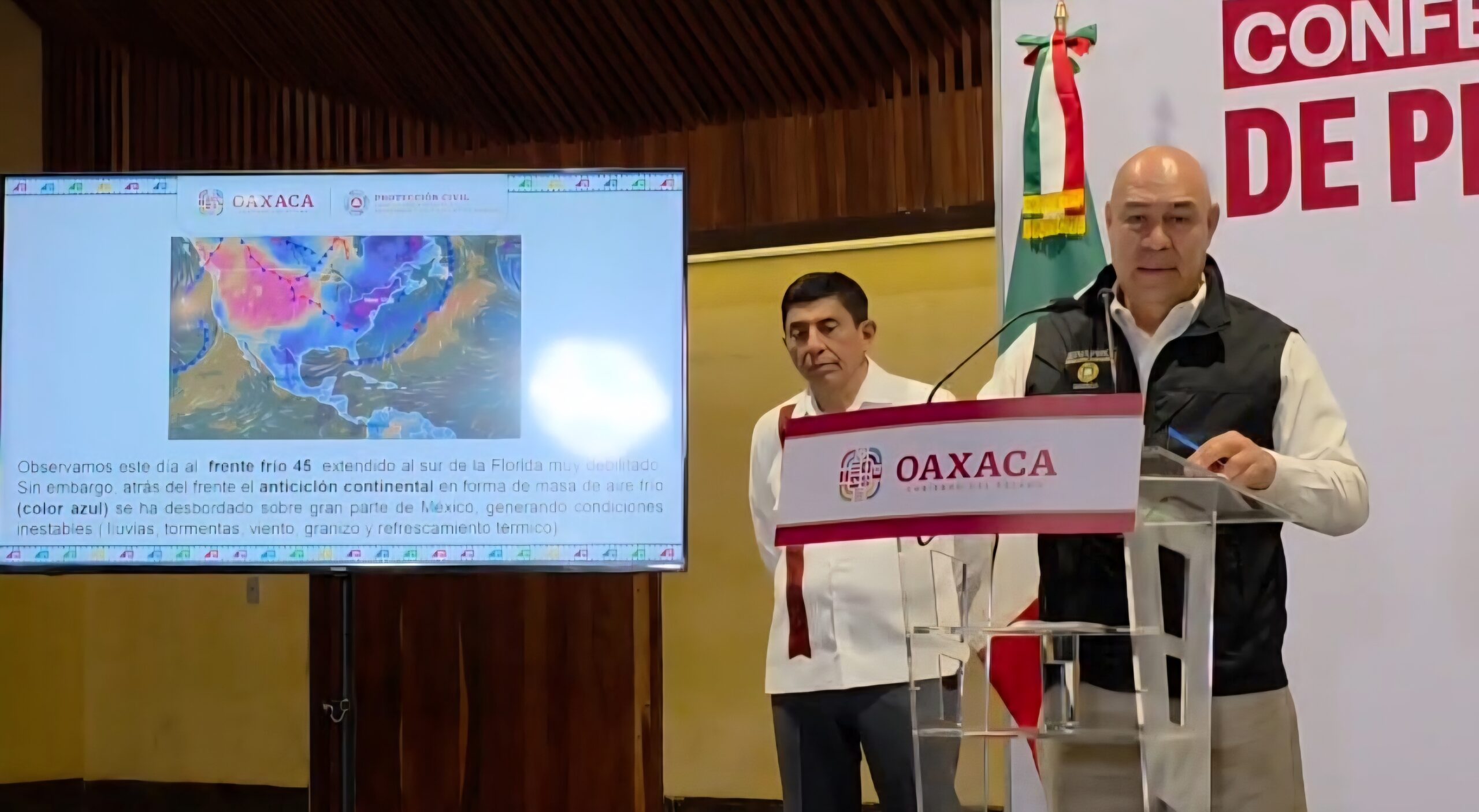El coordinador estatal de Protección Civil, Manuel Maza, advirtió que Oaxaca enfrentará en los próximos días condiciones climáticas inestables, derivadas del ingreso del frente frío número 45, el cual, aunque debilitado, está generando efectos importantes en gran parte del estado.