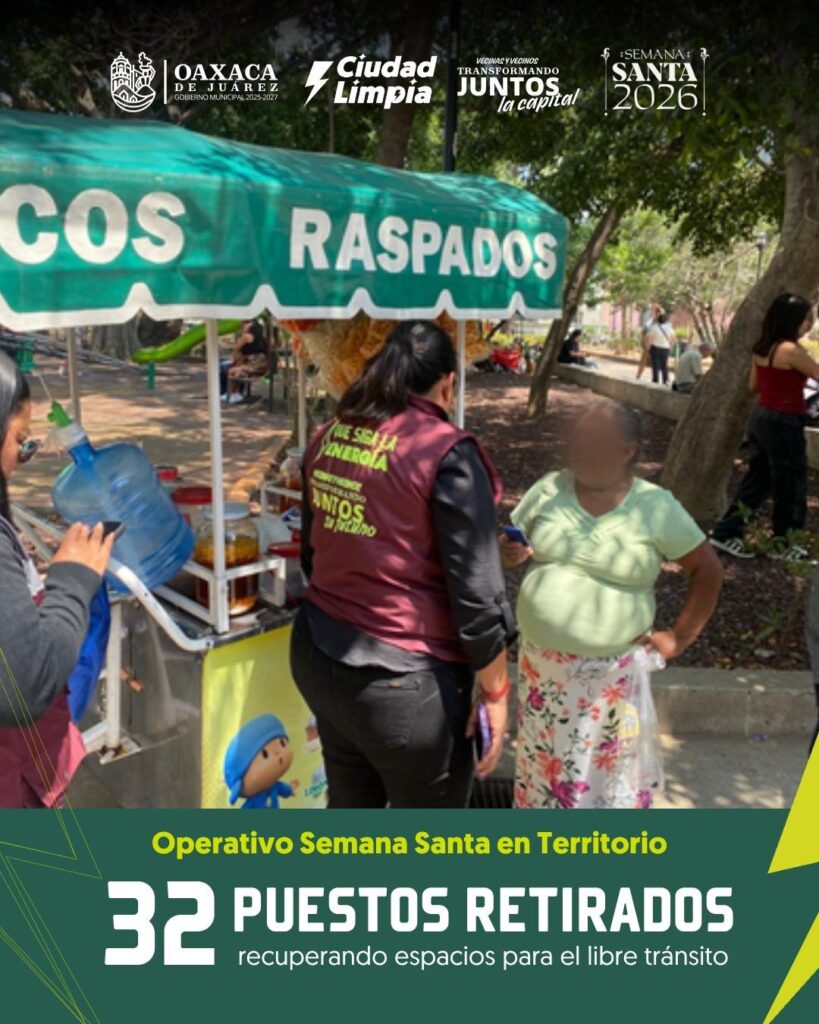 Con estas acciones, el Gobierno Municipal de Oaxaca de Juárez reitera su compromiso de seguir trabajando en territorio para fortalecer el orden, la convivencia y la recuperación de los espacios públicos en beneficio de todas y todos.