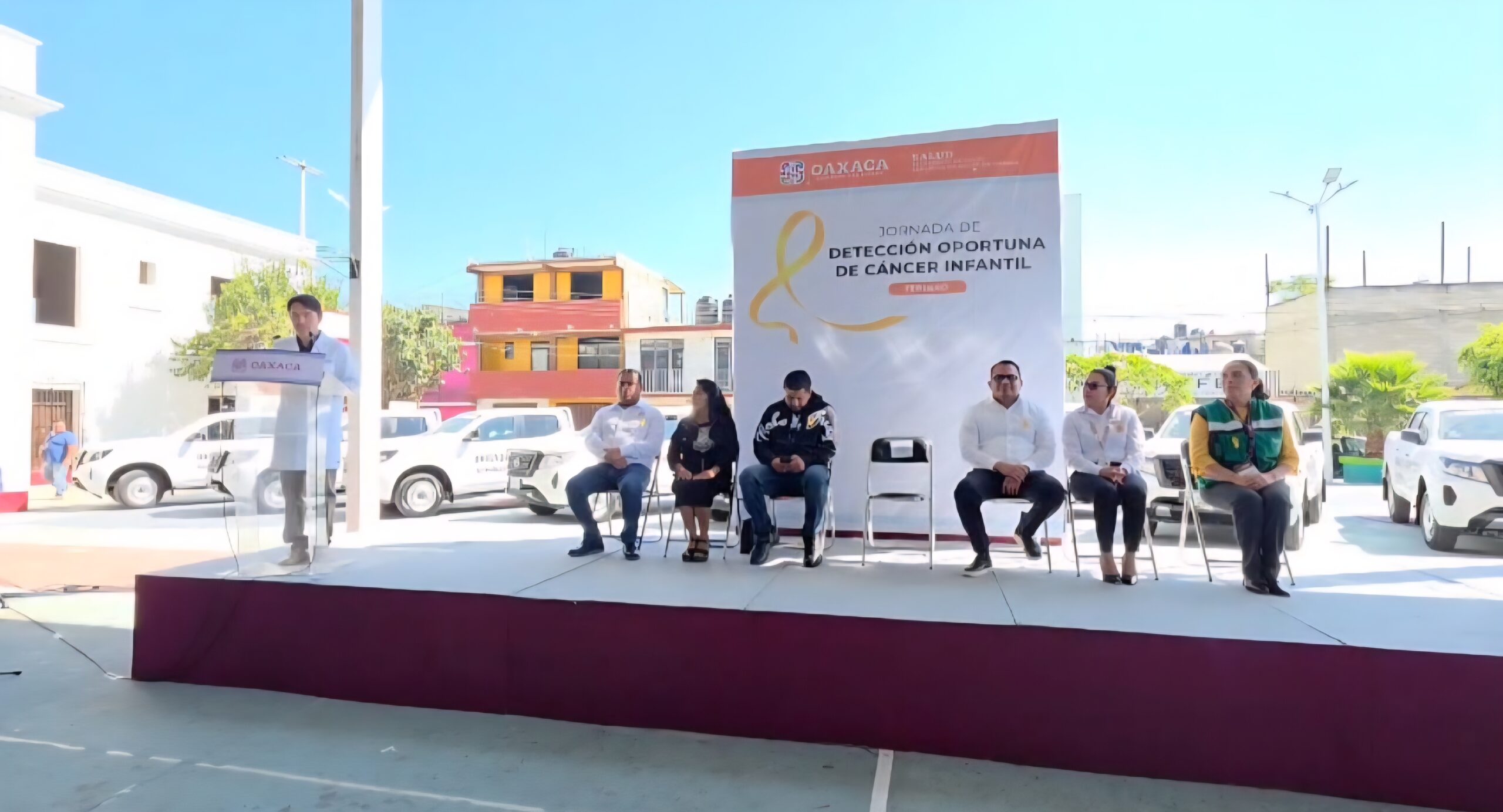 El evento se realizó en la agencia municipal de San Martín Mexicapan, donde participaron autoridades sanitarias, personal médico y ciudadanía, en el contexto del Día Internacional del Cáncer Infantil. 🎗️