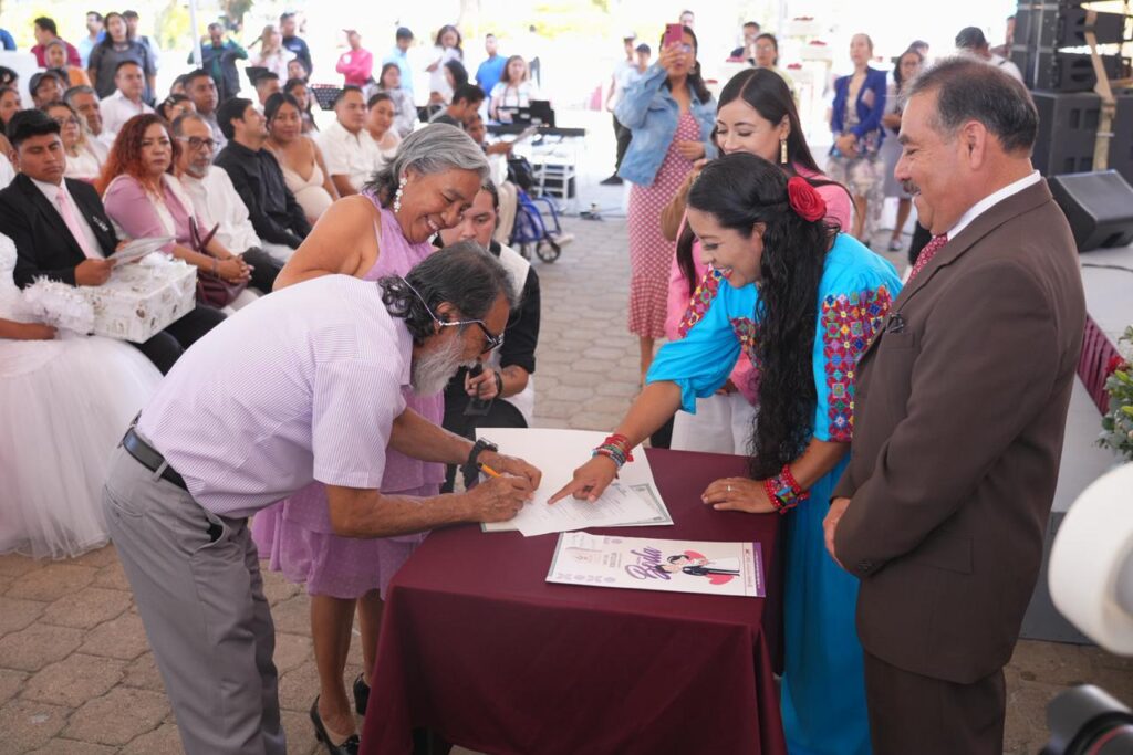 Por su parte, el oficial del Registro Civil de Xoxocotlán, Pedro Arturo Vásquez Esteva, concluyó formalmente la unión, resaltando que este paso otorga derechos y protecciones legales que fortalecen el bienestar de cada hogar.