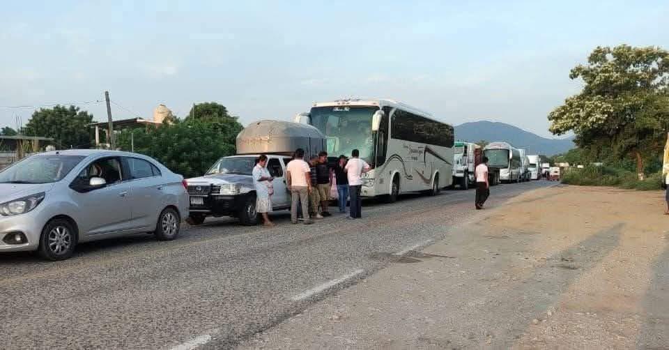 Por este bloqueo, decenas de vehículos se mantienen retenidos sobre la carretera federal 200, luego que no hay paso hacia Huatulco y el Puerto de Salina Cruz.