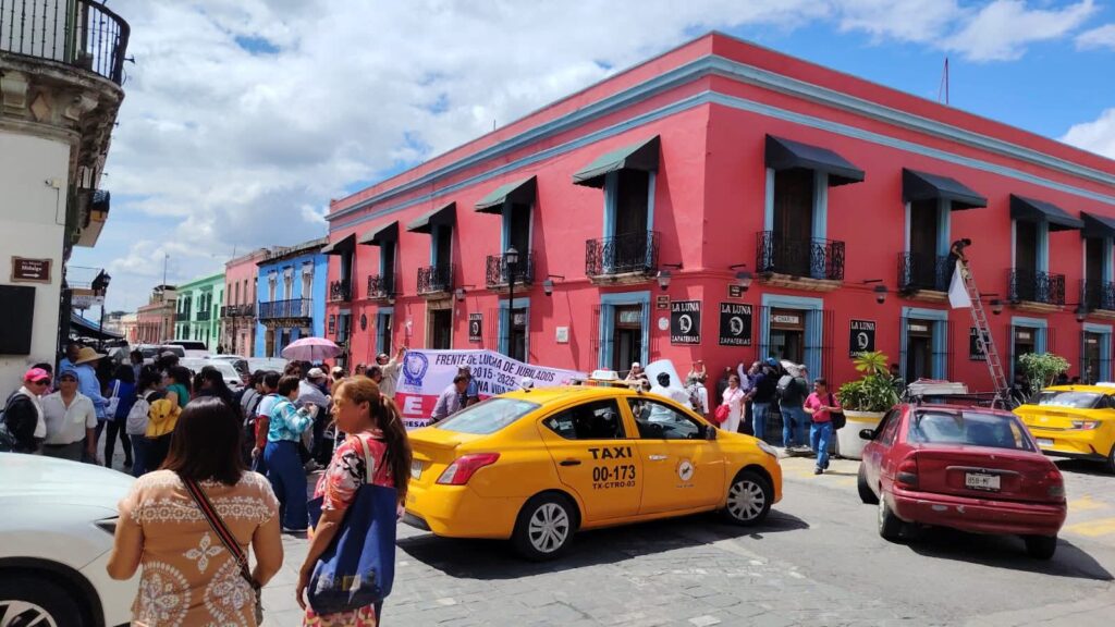 Supervisores y jefes de sector de la Educación Primaria General, adscritos a la Sección 22 de la CNTE, realizan este lunes su segunda semana de bloqueos en varias calles del Centro Histórico de Oaxaca para exigir el pago de salarios atrasados y la regularización de plazas presupuestadas desde 2015.