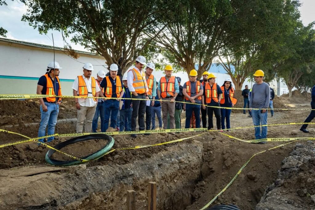 El presidente municipal, Ray Chagoya, realizó un recorrido de supervisión en la rehabilitación del colector sanitario y drenaje pluvial en Avenida La Campiña, en Candiani, acompañado por el agente municipal Iván Santiago.