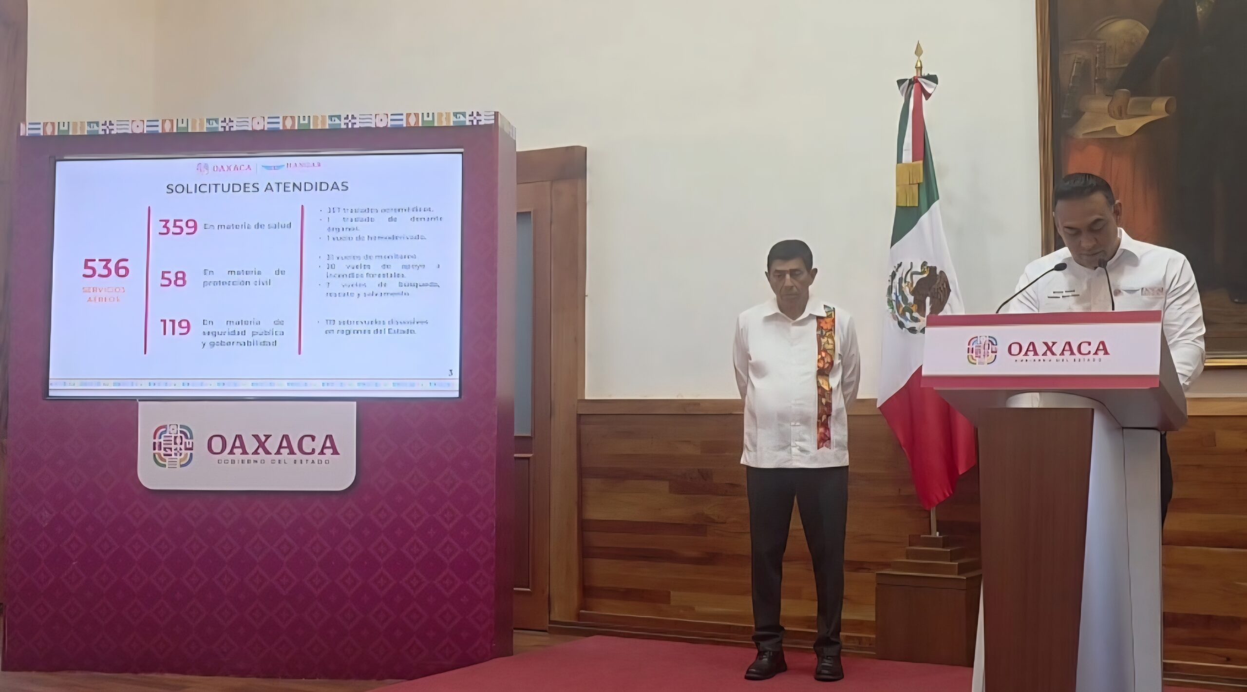 El director del hangar, Cuauhtémoc Almazán Cravioto, dio a conocer el tipo de servicios que se realizan mediante la movilidad aérea en Oaxaca, una entidad con más de 10 mil localidades y condiciones geográficas complejas.