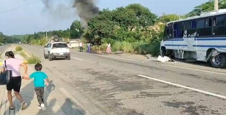 Varias personas lesionadas dejó un fuerte accidente ocurrido esta mañana sobre la carretera federal 200 a la altura de la localidad del Popoyote Santa María Tonameca.
