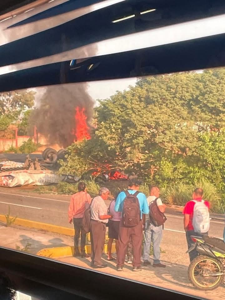 Por el fuerte impacto, el tráiler empezó a incendiarse, derivado a que llevaba combustible, pero no se han reportado víctimas.