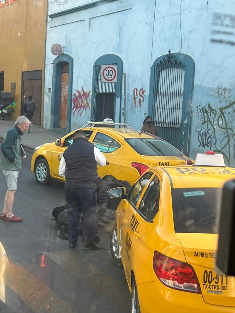 El primer reporte se dio en el cruce de Crespo e Independencia, donde un peatón fue atropellado. Testigos señalaron que un taxista presuntamente se pasó el semáforo y embistió a un joven en la intersección de González Ortega esquina Independencia, en la calle que sube hacia Crespo.