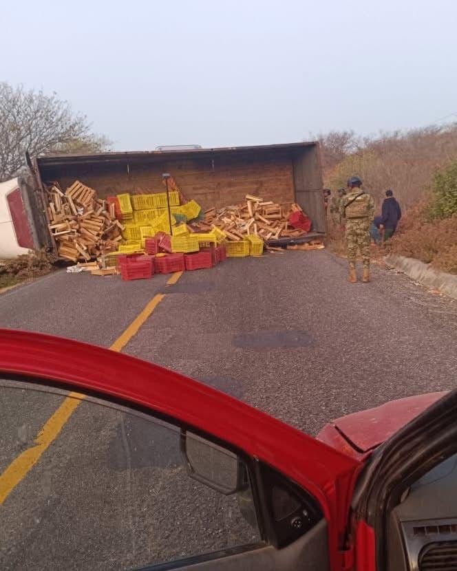 El cierre total de la carretera federal 190 dejó la volcadura de un torton sobre la carretera federal 190 a la altura de Marilú, Magdalena Tequisistlán.