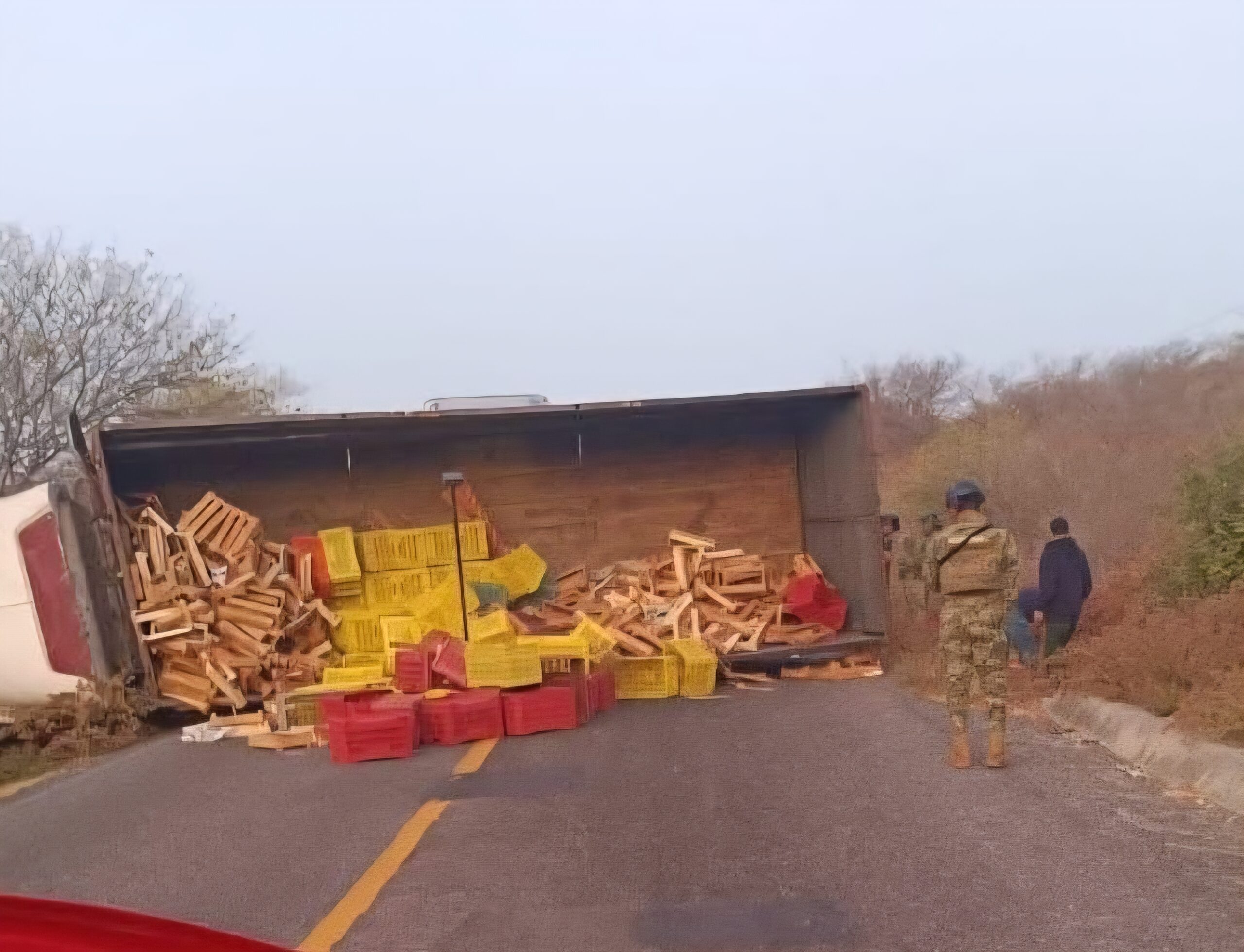 En el lugar se cayeron algunas cajas de plástico y de madera, las cuales trasladaba la unidad.